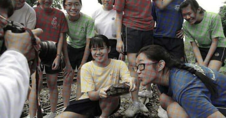 I just love optical illusions and this is one that has always fascinated me. If you look closely at the girl holding the turtle and then look at the red shirt standing just to the right of her. You can really see the color grid lines and the black-and-white photo.