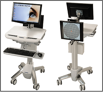 The first test that they had me do was what is called a Visual Field Test. The test isn’t painful, but it certainly is annoying. I like it a kin to the hearing tests (audiometry) where you put on the headphones and click the button every time you hear the beep. That test always seems to be a guessing game after a while. Your mind plays games on your “did I just hear a beep?”, “Was that a beep”, “Damn, I clicked the button and there wasn’t a beep”. Well, the Visual Field Test is just like that, except you are looking for flashes of light. It lasts about 4-5 minutes per eye and is about as annoying as it can get, but overall, it isn’t painful in the least (unless you count having to sit in one spot for the length of the test, which is painful on its own.