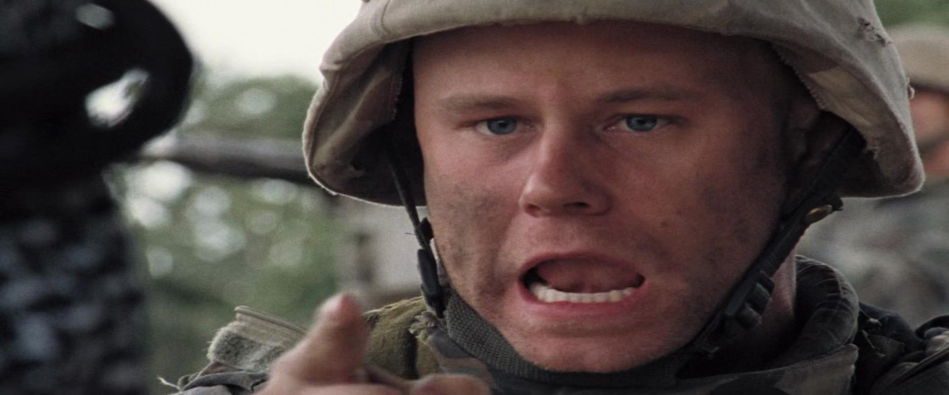 There is a scene where the Company Commander Capt Schwetje is addressing the Marines and trying to convince them that it is the enemy that destroyed the supply truck. He tells the Marines “And I know you’re mad at the battalion. Because as you know, I’ve been talking to you and I’ve heard you. And I know you’re angry. I know you’re angry that the supply truck was burned and you don’t have that food to eat. You told me this and I heard you. But you shouldn’t be angry at your command. If you’re angry at your command, then you’re saying it was our fault that the supply truck was burned. But we didn’t burn the supply truck. The enemy burned the supply truck. They took your food from you. That’s the important thing to remember. It was the enemy who stole your food from you and you should be mad at them. Before we step off on this next mission, I’m reminding you of who your enemy is… the enemy.”